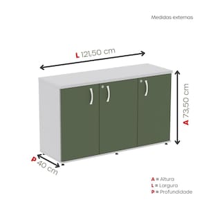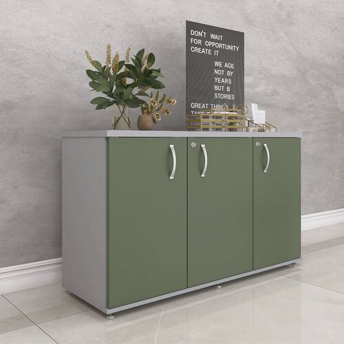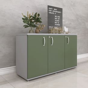 Armário para Escritório 3 Portas Credenza Cinza/Salvia