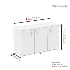 Seu design clean combina facilmente com diferentes mobílias, mantendo a harmonia da decoração. Ideal para o dia a dia de trabalho, é perfeito para deixar seu ambiente organizado, funcional e elegante. Acabamento da Porta: BP Acabamento da Prateleira: BP Ambiente Principal: Escritório Armário Suspenso: Não Complexidade da Montagem: Média: pode ser montado por mais de uma pessoa e/ou necessite de maior conhecimento para montagem Cor: Branco Cor do Produto: Branco Cor Interna: Branco Escala de Brilho: Semi-Fosco Escala de Brilho da Porta: Semi-Fosco Escala de Brilho da Prateleira: Semi-Fosco Formato do Armário: Retangular Itens Inclusos: 1 Armário e Manual de Montagem Linha ou Coleção: Credenza Manual de Montagem e Instalação: https://product-hub-prd.madeiramadeira.com.br/970621/documents/13fc4385-0a02-4835-84dd-eab15dd8edcc2723979387017411828145805.pdf Marca: Pandin Móveis Material da Porta: MDP Material da Prateleira: MDP Material dos Pés: Polipropileno Material Principal: MDP Necessita Montagem: Sim Orientação do Armário: Horizontal Origem do Produto: Nacional Peso: 38,882 kg Peso Máximo por Prateleira: 15 kg Possui Espelho: Não Possui Mesa Retrátil: Não Possui Pés: 06 Possui Portas: 03 Possui Prateleiras: 03 Quantidade de Armários: 1 Recomendações de Uso, Manutenção e Limpeza: Limpeza feita com um pano levemente umedecido e um pano seco. Sapatas Niveladoras: Sim Sistema de Montagem: Parafuso Suporta Até (kg): 30 kg Tamanho do Armário: Baixo (Até 90cm) Tipo de Armário: Totalmente Fechado Tipo de Dobradiça/Corrediça da Porta: Alumínio Tipo de Puxador da Porta: Externo Marca: Não Informado