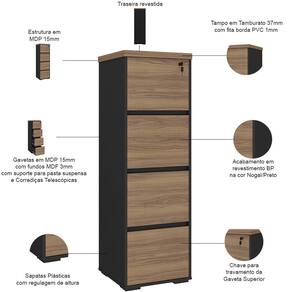 Organize seu escritório com o Armário Arquivo para Escritório 04 Gavetas com Chave Unik Nogal Preto, da Lyam Decor. Feito com tampo e base tamburato de alta qualidade e resistência, esse armário para pastas oferece praticidade e segurança para seus documentos.