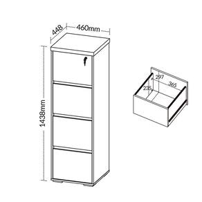 4 Gavetas em MDP 15mm com suporte para pasta suspensa e corrediças telescópicas.
