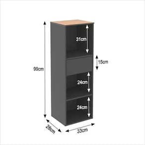 Ambiente Principal: Escritório | Largura: 33 cm | Complexidade da Montagem: Média | Pessoas necessárias para montagem: 1 | Altura: 99 cm | Profundidade: 28 cm | Suporta até: 30 kg | Possui iluminação Não | Peso 12 kg | Origem do produto | Necessita montagem: Sim | Possui portas: Não Possui Portas | Possui gavetas: Sim | Quantidade de caixas de embalagem: 1 | Possui prateleiras?: Possui 3 prateleiras | Possui nichos?: Não Possui Nichos | Possui espelhos?: Não Possui Espelhos | Possui vidro?: Não Possui Vidro | Modelo Tech; Estante; Armário; Sala de Estar; Escritório; Royal; | Marca: ViaNossa; ViaNossa Móveis; EDN Móveis; Tech; Royal | Material: MDP e MDF | Formato do móvel: Armário | Acabamento Pintura UV | Tempo de garantia: 3 meses | Tipo de garantia: Fabricante | Inclui manual de montagem: Sim Preto e Cedro