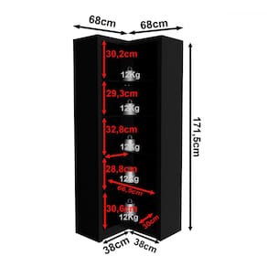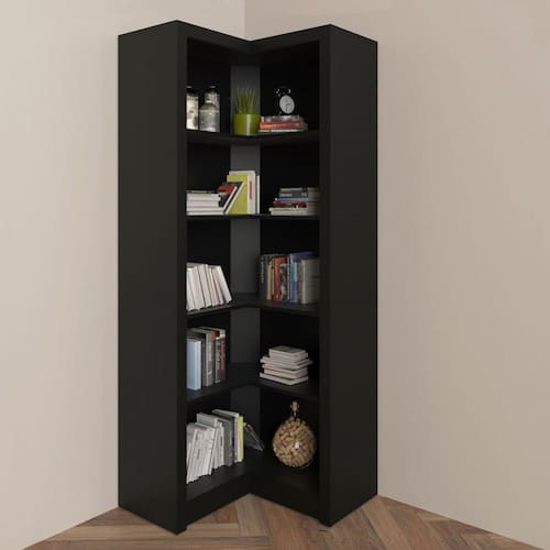 O(a) Armário para Escritório de Canto Preto Me4132 - Tecno Mobili  é produzido em MDP na escala de brilho Semi-Brilho, e possui um grau de dificuldade de montagem: Médio.