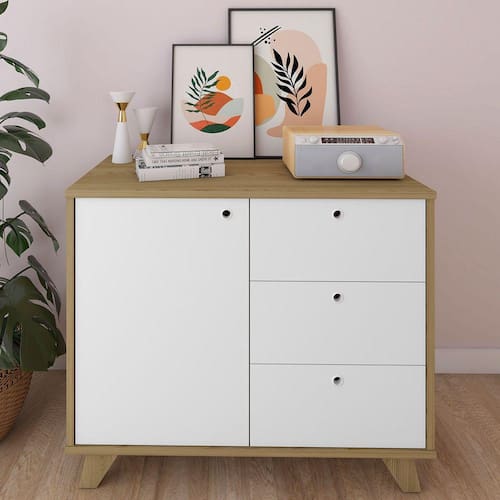 O(a) Armário para Escritório Lugano 1 Porta 3 Gavetas Olmo/Branco - Artany Móveis é produzido em MDP na escala de brilho Fosco, e possui um grau de dificuldade de montagem: Médio.