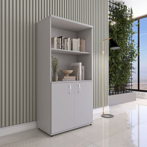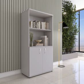 Armário para Escritório Misto 02 Portas Pivotante Cinza