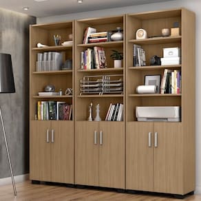 Acompanha portas ( Conforme Fotos), que podem ser utilizadas com ou sem a mesma. Altura do Conjunto: 188 cm Ambiente: null Ambiente Principal: Escritório Cor: Freijó Informação Complementar: 3x Armário para Escritório Livreiro 2 Portas 5 Prateleiras Móveis Leão Freijó Largura: 60.5 Altura: 188 Peso: 30 Profundidade: 34 cm Necessita Montagem: Sim
