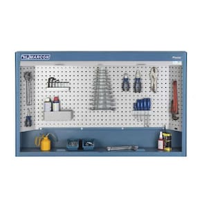 Chapa Perfurada: Permite a fixação personalizada de ganchos e suportes, facilitando a organização de ferramentas de diferentes tamanhos e formatos.