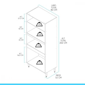 Dimensões: Altura: 202 cm Largura: 80 cm Profundidade: 52 cm Peso: 43 kg