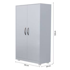 Altura total: 158 cmLargura total: 90 cmProfundidade total: 39 cmAltura da porta: 146 cmLargura da porta: 41 cmLargura da prateleira maior: 82 cmProfundidade da prateleira maior: 37 cmLargura da prateleira menor: 40,5 cmProfundidade da prateleira menor: 36,5 cmProfundidade com porta aberta: 78,5 cm