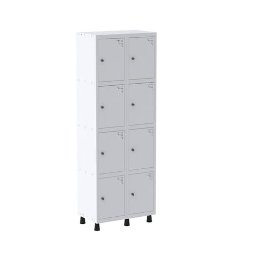 Armário Roupeiro de Aço totalmente montável, dispensa a utilização de parafusos, estrutura em chapas #24 e #26 (0,60mm e 0,45mm) conta com uma porta com estampos circulares em formação triangular para ventilação, sistema de fechamento de varão de 3 pontos, através de pitão para cadeado. Acabamento da Porta: Pintura Acabamento dos Pés: Polipropileno Altura dos Pés: 3 Ambiente Principal: Banheiro Complexidade da Montagem: Média: pode ser montado por mais de uma pessoa e/ou necessite de maior conhecimento para montagem Cor: Branco Cor do Produto: Branco Cor Flex: Não Cor Interna: Branco Escala de Brilho: Semi-Fosco Escala de Brilho da Porta: Semi-Fosco Espessura do Tampo: 40 Itens Inclusos: 1 Armário e Manual de Montagem. Linha ou Coleção: Aço Manual de Montagem e Instalação: https://product-hub-prd.madeiramadeira.com.br/647399/documents/cb0faeb8-a035-402b-8722-b2687c9f0e3c6014roupeiro4portasvirtual.pdf Material da Porta: Aço Material dos Pés: Polipropileno Material Principal: Aço Montagem Flex: Não Necessita Montagem: Sim Origem do Produto: Nacional Pés Reguláveis: Sim Peso: 30.87 Possui Espelho: Não Possui Nicho: Não Possui Pés: 08 Possui Portas: 08 Possui Prateleiras: Não Recomendações de Uso, Manutenção e Limpeza: Utilizar um pano levemente umedecido com água, para finalizar utilizar um pano seco. Sapatas Niveladoras: Não Sistema de Montagem: Parafuso Suporta Até (kg): 15 Tipo de Dobradiça/Corrediça da Porta: Aço Tipo de Puxador da Porta: Externo Ean: 7909903406489