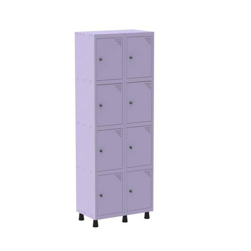Armário Roupeiro de Aço totalmente montável, dispensa a utilização de parafusos, estrutura em chapas #24 e #26 (0,60mm e 0,45mm) conta com uma porta com estampos circulares em formação triangular para ventilação, sistema de fechamento de varão de 3 pontos, através de pitão para cadeado. Acabamento da Porta: Pintura Acabamento dos Pés: Polipropileno Altura dos Pés: 3 Ambiente Principal: Banheiro Complexidade da Montagem: Média: pode ser montado por mais de uma pessoa e/ou necessite de maior conhecimento para montagem Cor: Lilás Cor do Produto: Lilás Cor Flex: Não Cor Interna: Lilás Escala de Brilho: Semi-Fosco Escala de Brilho da Porta: Semi-Fosco Espessura do Tampo: 40 Itens Inclusos: 1 Armário e Manual de Montagem. Linha ou Coleção: Aço Manual de Montagem e Instalação: https://product-hub-prd.madeiramadeira.com.br/647402/documents/1a8e28cb-e620-4b61-a809-e3b4d0fb16d46014roupeiro4portasvirtual.pdf Material da Porta: Aço Material do Puxador da Porta: Poliestireno Material dos Pés: Polipropileno Material Principal: Aço Montagem Flex: Não Necessita Montagem: Sim Origem do Produto: Nacional Pés Reguláveis: Sim Peso: 30.87 Possui Espelho: Não Possui Nicho: Não Possui Pés: 08 Possui Portas: 08 Possui Prateleiras: Não Recomendações de Uso, Manutenção e Limpeza: Utilizar um pano levemente umedecido com água, para finalizar utilizar um pano seco. Sapatas Niveladoras: Não Sistema de Montagem: Parafuso Suporta Até (kg): 15 Tipo de Dobradiça/Corrediça da Porta: Aço Tipo de Puxador da Porta: Externo Ean: 7909903406502