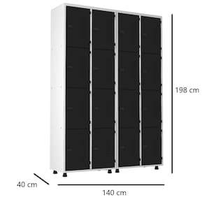 Armário Roupeiro Aço 16 Portas Trinco Preto