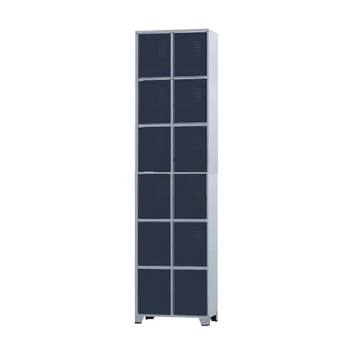 Armário Roupeiro de aço para vestiário,ideal para academias, surpermercados, empresa e para uso geral. Produzido em aço chapa 26 0,45mm de alta qualidade com tratamento anti-ferruginoso, o acabamento em sistema de pintura eletrostática a alta temperatura epóxi, tambem garante maior durabilidade da cor e resistencia a ferrugem. Possui 12 portas com venezianas para ventilação, compartimentos de tamanhos médios independentes sem divisórias internas, que garante que você consiga armazenar itens como bolsas, mochilas e entre outros. O fechamento das portas é através de pitão para cadeado.