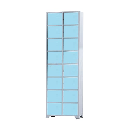 Armário Roupeiro de aço para vestiário,ideal para academias, surpermercados, empresa e para uso geral. Produzido em aço chapa 26 0,45mm de alta qualidade com tratamento anti-ferruginoso, o acabamento em sistema de pintura eletrostática a alta temperatura epóxi, tambem garante maior durabilidade da cor e resistencia a ferrugem. Possui 16 portas com venezianas para ventilação, compartimentos de tamanhos médios independentes sem divisórias internas, que garante que você consiga armazenar itens como bolsas, mochilas e entre outros. O fechamento das portas é através de pitão para cadeado.