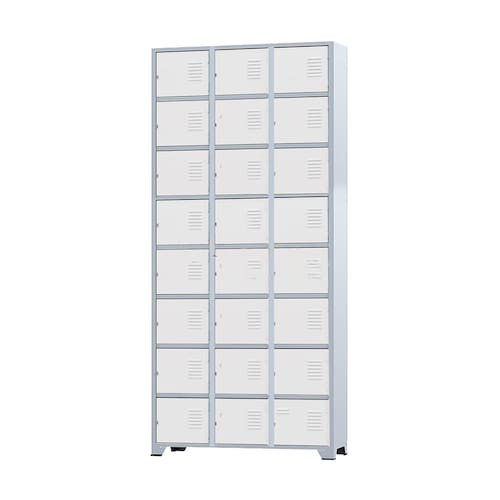Armário Roupeiro de aço para vestiário,ideal para academias, surpermercados, empresa e para uso geral. Produzido em aço chapa 26 0,45mm de alta qualidade com tratamento anti-ferruginoso, o acabamento em sistema de pintura eletrostática a alta temperatura epóxi, tambem garante maior durabilidade da cor e resistencia a ferrugem. Possui 24 portas com venezianas para ventilação, compartimentos de tamanhos médios independentes sem divisórias internas, que garante que você consiga armazenar itens como bolsas, mochilas e entre outros. O fechamento das portas é através de pitão para cadeado.