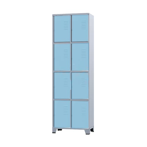 Armário Roupeiro de aço para vestiário,ideal para academias, surpermercados, empresa e para uso geral. Produzido em aço chapa 26 0,45mm de alta qualidade com tratamento anti-ferruginoso, o acabamento em sistema de pintura eletrostática a alta temperatura epóxi, tambem garante maior durabilidade da cor e resistencia a ferrugem. Possui 8 portas com venezianas para ventilação, compartimentos de tamanhos médios independentes sem divisórias internas, que garante que você consiga armazenar itens como bolsas, mochilas e entre outros. O fechamento das portas é através de pitão para cadeado.