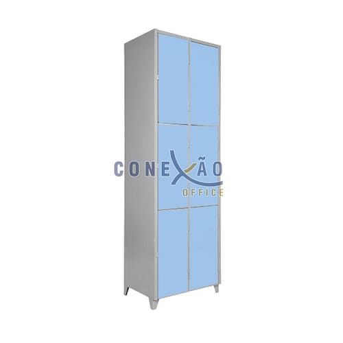 Armário Roupeiro de aço para vestiário,ideal para academias, surpermercados, empresa e para uso geral. Produzido em aço chapa 26 0,45mm de alta qualidade com tratamento anti-ferruginoso, o acabamento em sistema de pintura eletrostática a alta temperatura epóxi, tambem garante maior durabilidade da cor e resistencia a ferrugem. Possui 8 portas com venezianas para ventilação, compartimentos de tamanhos médios independentes sem divisórias internas, que garante que você consiga armazenar itens como bolsas, mochilas e entre outros. O fechamento das portas é através de pitão para cadeado.