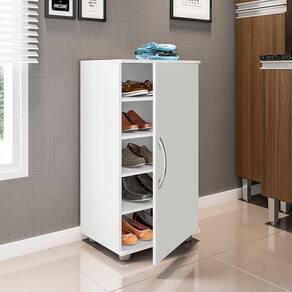 Armário Sapateira Multiuso Organizador Flávia 4 Prateleiras A Sapateira 1 porta 4 prateleiras Flávia é um produto para compor seu ambiente com praticidade e estilo. Amplo espaço interno com 04 prateleiras móveis para melhor acomodação dos calçados. Puxador em polímero, pés PVC fixo garantindo firmeza ao móvel, em MDP com acabamento em pintura UV brilho. Qualidade que só a Poliman oferece em seus produtos. (A quantidade de calçados pode variar de acordo com o modelo e tamanho dos ões:- Altura: 82cm;- Largura: 43cm;- Profundidade: 34cm;- Peso: 13,700kg.- Sapateira com pés PVC fixos 5cm;- Prateleiras Internas em MDP Pintura UV;- Escala de brilho: brilhante;- 1 porta;- 2 dobradiças de aço 26mm;- Puxador em polímero;- 4 prateleiras removíveis;- Suporta até limpeza utilize pano macio levemente umedecido e na sequência pano seco. Não usar produtos químicos ou abrasivos para a limpeza.