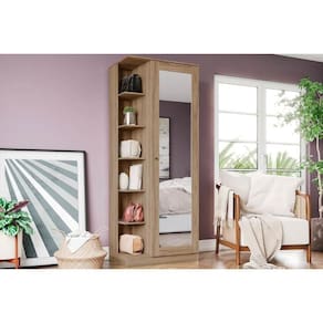 Armário Sapateira Quarto Duetto c/ 1 Porta c/ Espelho Rústico - Henn