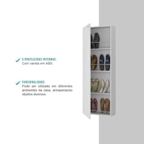 O Armário Sapateira Carraro é a peça ideal para ser utilizada em diferentes cômodos da casa, ajudando a manter todos os objetos em ordem e assim facilitando as tarefas do dia a dia. É uma solução indispensável para quem precisa de mais espaço e organização para o ambiente, pois conta com diversas prateleiras internas, além de permitir ser fixada tanto na parede como na lateral de roupeiros.
