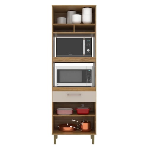 Armário Torre Quente 70 Cm Moderno Ipê/Cristalo - Bege