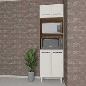 Armário Torre Quente Paneleiro De Cozinha 4 Portas E 2 Nichos Para Forno E Microondas Luna Savana E Off White Paneleiro Torre Quente Luna O Paneleiro Torre Quente Luna da Moblis Móveis é a solução ideal para quem busca organizar o ambiente sem abrir mão da estética. Com espaço suficiente para armazenar micro-ondas e forno, este paneleiro transforma qualquer cozinha, proporcionando um visual moderno e arrumado. Fabricado em MDP de alta qualidade, este móvel não só é bonito, mas também extremamente funcional.
