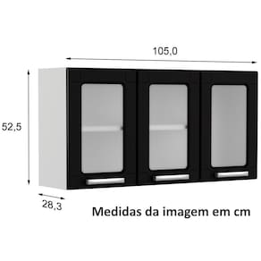 Estrutura: : Aço Carbono com acabamento empintura eletrostáticaPortas: : 03 com VidroDobradiças: : MetálicasPrateleiras: : 01 InternasPuxadores: : PVCTipo: : ParedeAmbiente: : CozinhaLargura: : 105,0 cmAltura: : 52,5 cmProfundidade: : 28,3 cmPeso: : 11,380 KgGarantia: : 03 mesesInformações Sobre Montagem: : Não possuímos serviço de montagem.