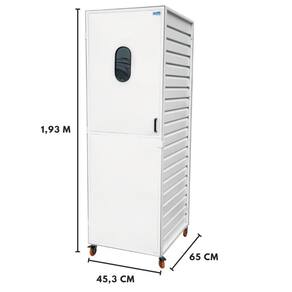 O armário para crescimento de pães INNAL é ideal para o seu comércio! Ele é fabricado em aço carbono com pintura epóxi de alta resistência e durabilidade na cor branca. Possui capacidade para 20 assadeiras de 40x60 cm, é de fácil montagem e acompanha rodízios para facilitar o seu deslocamento.