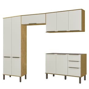 Redefina sua lavanderia com este conjunto completo de 5 peças, projetado para oferecer praticidade, design moderno e durabilidade. Todo o conjunto é produzido 100% em MDP de 15mm, para maior resistência, enquanto os puxadores em alumínio agregam sofisticação. O conjunto conta com dois armários aéreos sendo um deles com uma porta basculante com pistão a gás. O balcão para pia de 120cm, além do tampo de 15mm, possui 2 portas e 3 gavetas, perfeita para otimizar espaço, além das corrediças telescópicas, para um deslizar suave. Também está incluso o paneleiro de 4 portas multiuso com 6 prateleiras internas, proporcionando maior organização para utensílios, produtos de limpeza e mantimentos, um conjunto completo com dobradiças metálicas. Todo o conjunto é esquipado com pés reguláveis. Este móvel chegará na sua casa separado em 05 volume.