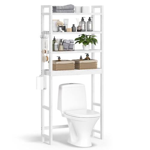 - ?Armazenamento de 4 camadas sobre o vaso sanitário?Utilize o espaço do seu banheiro ao máximo com esta prateleira sobre o vaso sanitário que possui 4 prateleiras, 4 ganchos e um suporte de papel higiênico. Mantém toalhas, lenços ou maquiagem facilmente acessíveis sem ocupar espaço extra no chão