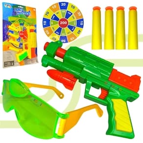Conheça a incrível Arminha que lança dardos, além de possuir um design deslumbrante e conter cores vivas, acompanha um óculos para a proteção dos pequenos!