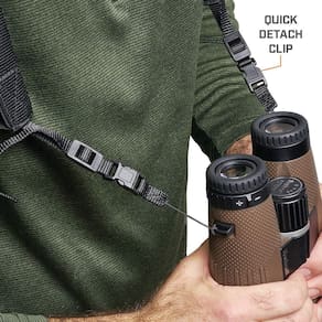 - Fácil de colocar binóculos e usar. Os clipes binoculares de desanexação rápida facilitam a fixação dos binóculos e o uso