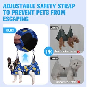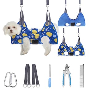 Arnês de higiene de cães de estimação para cães e gatos com cortador de unhas para animais de estimação e pente para animais de estimação, porta-arnês para pendurar cachorros pequenos e médios com tecido macio e espesso, suporte de pescoço para garras, orelhas e olhos - KIT PROFISSIONAL DE TRATAMENTO DE CÃES: a rede para cortar unhas para cães é equipada com mosquetões sólidos, mais grossos e superfortes x2, cortadores de unhas para cães com design de dispositivo de segurança x1, lima x1, aço pente x1, funda alargada e espessada x2. Esses itens e a rede para cães são uma combinação perfeita. Você pode aparar as unhas e escová-las com metade do esforço. FUNÇÕES PODEROSAS: Esta rede para cortar unhas para cães pode ser usada nos dois lados. Um lado é feito de veludo de cristal e o outro é feito de tecido de malha, para que possa ser utilizado em todas as estações. Mesmo em casa, você pode facilmente fazer as mesmas coisas que a mesa de higiene de um hospital para animais de estimação, como aparar unhas, escovar, tomar banho, cuidar da saúde ocular e auditiva, verificar vários indicadores corporais - REDE SEGURA PARA CÃES PARA APARAR UNHAS: basta colocar as pernas do animal de estimação em orifícios, conectar a alça em D à rede de higiene de cães com um mosquetão e fixá-la no poste. Esta rede para cães vem com uma alça de segurança ajustável que se prende com segurança nas costas do animal de estimação. É fácil de ajustar para caber perfeitamente em seu animal de estimação sem se preocupar com o risco de ferimentos causados pela fuga do animal. CONFORTÁVEL E LAVÁVEL: material macio com bordas espessas faz com que esta funda de higiene de animais de estimação aumente o conforto e a robustez. Além disso, a bolsa de higiene para cães tem um suporte superior mais largo na parte inferior do corpo e maior espaço frontal no peito/pescoço. E nossos mosquetões pesados com melhor suporte de peso. Nosso arnês para cortar unhas pode ser lavado na máquina - DESCRIÇÃO DO TAMANHO: O arnês de cuidar de cães está disponível em 3 tamanhos: XS/S/M. Nota: Nossas redes para cães são projetadas para cães pequenos, médios, gatos grandes e alguns cães grandes em tamanho de cachorros. Leia a tabela de tamanhos e meça o espaçamento entre as pernas dianteiras e traseiras de seus animais de estimação antes de comprar. Se você tiver outra pergunta,