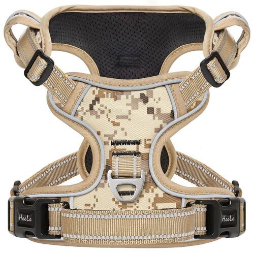 HEELE Dog Harness for Small Medium Large Dogs with Soft Handle HEELE Dog Harness is stylish, safety, and durable. HEELE Dog Vest Harness do the best to prevent the dog injuries than a collar. From a training perspective, this harnesses are useful for teaching your dog not to pull as the pressure from a harness is more evenly distributed around your dog's body. Reflective Nylon webbing ensure good visibility for this high-end Dog Harness.Compare to other harnesses to see the Difference in our Quality and Appearance. Please refer to the size chart image for correct item dimensions before you buy. Features: 1. The harness is specially built to distribute pressure evenly and safely around your dogs' chest rather than sensitive neck, thus preventing choking. The thoughtfully designed construction would not rub your dog's sensitive skin. 2. 2 metal clips and 1 sturdy handle make your dog a happy dog! Front Clip: Give you more control on your dog's trajectory to let it learn to heel and lessen their desire to pull. Let your dog actively focus on you during walk, which is very important for training. Chest Clip: Give your dog a comfortable control. Suitable for casual walking. Handy Sturdy H?ndl?: With a sturdy handle on the back,you can control your dog directly by your hands. H?l? ??u to m?n?g? d?ff??ult situations ?u?h ?? wh?n ??u ?r? b?th?r?d b? ?n?th?r d?g ?r if ??u ?r? guiding your dog into a car. 3. Easy to Wear: Fully adjustable at neck & chest with 4 adjusters. No need to adjust it too often once customized a snug and nice fit for your dog. Just slip it over the head, connect the quick release fasteners and off you go. - Fácil de colocar e tirar – um peitoral para cães com cinto peitoral ajustável e 2 fivelas de liberação rápida para garantir HEELE segurança do seu cão e criar um ajuste personalizado para o seu cão. Tamanho P: pescoço 34-48 cm (14-19 pol.), peito 35-61 cm (14-24 pol). - Design sem puxar e não estrangular: sem desconforto no pescoço do cão, a pressão de tração é distribuída uniformemente ao corpo para evitar puxar e asfixiar. Com 2 anéis de coleira de metal para passeios com cães mais seguros. Use o anel no peito para impedir que seu cão puxe para passear e o anel traseiro é ótimo para passeios casuais, etc. - Fácil de ajustar: com 4 alças fortes e ajustáveis ao redor do corpo. Você pode usar 2 tiras de pescoço e 2 tiras no peito para oferecer um ajuste ideal com espaço extra de crescimento. Não se preocupe em escorregar ou engasgar. - Durável e confortável – Feito de oxford de nylon durável e acolchoado com almofada macia para proteger a pele do seu cão. O forro de malha leve respirável e confortável mantém seu cão fresco durante atividades ao ar livre. Acolchoamento de esponja macia no peito e na barriga, oferecendo conforto e proteção extra. - Controle seguro e perfeito – Tiras refletivas super brilhantes garantem uma caminhada segura no escuro e à noite. Uma alça resistente acolchoada de neoprene macio na parte traseira para ajudar você a pegar e controlar seus cães em uma emergência, também ajuda a entrar no carro ou degraus. Meça seu cão para obter o tamanho certo antes de comprar. Para obter mais detalhes, leia a descrição do produto abaixo.