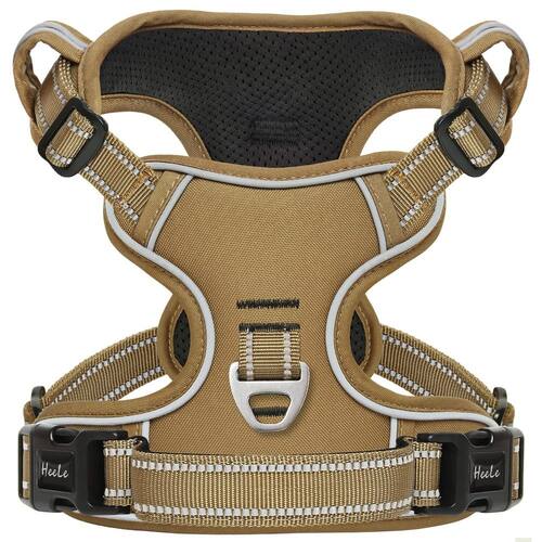 Arnês para cães HEELE, sem tração, ajustável, acolchoado, refletivo, marrom L