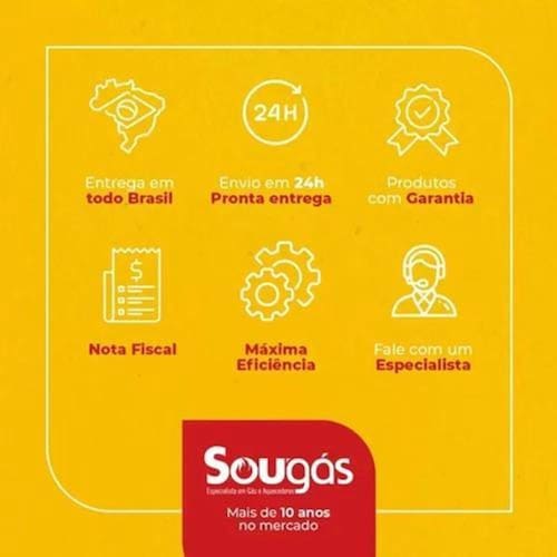 Fabricado pela Sougas, especialista em gás e aquecedores, o aro é produzido com materiais de alta qualidade, garantindo durabilidade e resistência. A Sougas é uma distribuidora e assistência técnica autorizada das principais marcas do segmento, com mais de 10 anos de experiência no mercado.