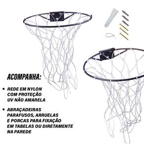 ARO - Diâmetro de 36 cm Material muito robusto em aço trefilado 5/16" (12,7 mm) com reforço estrutural Pintura eletrostática na cor Preto Fixado na tabela ou parede por meio de 3 parafusos/porcas