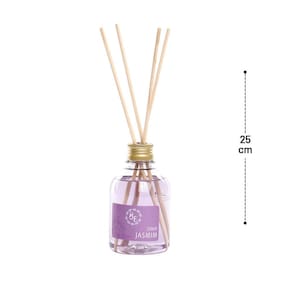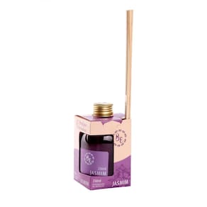 Aromatizador de Ambiente 250ml Jasmim Aromatizador de ambiente 250ml Jasmim. Contém fragrância de Jasmim. Possui 250ml e acompanha 4 varetas de madeira reflorestada.\nMarca : ALOP Tipo de material : Água aromatizada Cores ou Estampa : Roxo Dimensões do Produto : 25 X 6,5 X 6,5 CM Peso Bruto (Gramas) : 0.254 Marca: Não Informado