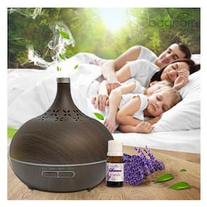 Umidificador e Aromatizador de Ar Ultrassônico 400 ml com Óleo Aromatizador Lavanda 10 ml Um kit para você perfumar qualquer ambiente. Bonito e elegante, umidifica, difunde e purifica o ar espalhando a nevoa para criar um ambiente úmido e com qualidade de ar trazendo bem-estar a você. Umidifica espalhando partículas de água, desta forma diminui a quantidade de partícula solida no ar, deixando o ar mais fresco. Difundindo o ar para criar um ambiente agradável e úmido, diminuindo cansaço, trazendo bem-estar. Este difusor de aroma é silencioso som de operação abaixo de 35 decibéis e mantendo o ambiente úmido hidrata a pele. Aromatize seu ambiente com a essência de Lavanda deixando um ar perfumado e agradável. Possui luz de LED com 7 cores, que mudam alternadamente ou você pode escolher a cor de sua preferência. - Capacidade do tanque: 400ml - Especificações Elétricas: 110-240V Bivolt - Potência: 13W - Função desligamento Automático: Sim - Método de umidificação: Descarga de Névoa - Saída de névoa: cerca de 30-50 ml/h - Tipo: umidificação ultrassônico - Ajuste de tempo: 1hr - 3hr - 6hr- - Função: Aromaterapia - Dimensões: 170 x 150MM- -luzes de LED: 7 cores - Material: PP/ABS/PC imitação de madeira INSTRUÇÕES DE USO: 1º passo: coloque a quantidade de água desejada em seu difusor. Lembrando que não pode ultrapassar a linha do limite de água e o difusor deverá estar desligado. 2º passo: conectar a fonte no seu difusor. 3º passo: conectar a fonte na tomada somente quando difusor estiver com água. 4º passo: escolha a cor desejada das luzes. 5º passo: escolha quanto tempo você quer utilizar seu difusor. São 4 tempos para você escolher.: 1h, 3h e 6h e mais de 6h. - Não ultrapassar a linha de indicação máxima para inserir a água. - Não ligue se o recipiente estiver vazio - Limpe regularmente para evitar mau funcionamento