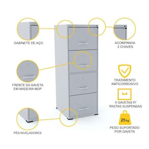 Sabe aquela mistura de atemporal com vintage? Pois é essa a personalidade deste arquivo de 4 gavetas, que vem em diversas opções de cores, como este cinza básico e elegante. Este arquivo para pastas suspensas é confeccionado em aço e tem a frente em madeira, sendo perfeito para organizar documentos em ambientes de trabalho, estudo e pesquisa que precisam de praticidade e estilo. Espaçoso por dentro e suave no deslize, este arquivo é um móvel essencial na organização e produtividade de escritórios, consultórios, empresas e até mesmo uma opção diferente para decorar seu home office. Esse item faz parte da Linha Maxxi de móveis para escritório da Pandin, a linha ideal para quem procura por ambientes de trabalho funcionais com alto valor agregado e formatos que permitem diversas formas de ambientação. Aposte certeiro na Linha Maxxi Pandin quando o assunto for praticidade, qualidade e versatilidade.