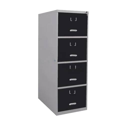 Arquivo de Aço com 04 (quatro) gavetas c/ rolamento e puxador, para pasta suspensa, fabricado em chapa 26, resistente a 15kg por gaveta. Pode ser utilizado em qualquer ambiente, ideal para escritórios e até mesmo em residências. Produzido em Aço de alta qualidade em chapa 26 (0,45mm), com tratamento anti-ferruginoso, possui 04 gavetas em chapa 26 (0,45mm) com sistema de rolamentos para abertura das gavetas e com fechadura com 02 (duas) chaves. O acabamento em sistema de pintura eletrostática a alta temperatura a pó (epóxi) também garante maior durabilidade da cor e resistência à ferrugem.