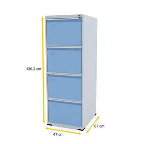 Muitos documentos para organizar? Nossa sugestão: invista em peças modernas e de qualidade, como este arquivo de aço da Pandin. Sua estação de trabalho vai ficar mais bonita e você vai ganhar tempo com este arquivo de aço com quatro gavetas, nas cores cinza e azul claro. A decoração de sua sala de trabalho pede outra cor? Nós temos! Este modelo vem em diversas opções de cores, que podem compor escritórios dos mais sóbrios aos mais criativos. Organize sua papelada, suas pastas, materiais de trabalho e documentos em geral com esse arquivo, um dos mais vendidos por nós. Leve este arquivo para seu home-office ou sua empresa e facilite suas ações diárias! Esta é mais uma peça da linha Aço da Pandin, que oferece móveis práticos, duráveis, muito resistentes e de excelente custo-benefício. Você pode combinar este arquivo com outros móveis da linha, como nossos armários, estantes e roupeiros de aço e criar um ambiente sob medida, personalizado de acordo com suas necessidades.