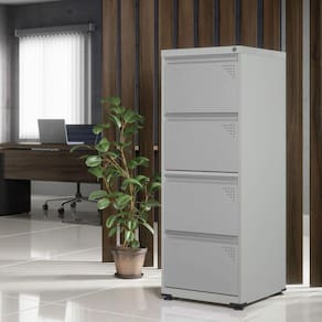 Muitos documentos para organizar? Nossa sugestão: invista em peças modernas e de qualidade, como este arquivo de aço da Pandin. Sua estação de trabalho vai ficar mais bonita e você vai ganhar tempo com este arquivo de aço com quatro gavetas, na cor cinza. A decoração de sua sala de trabalho pede outra cor? Nós temos! Este modelo vem em diversas opções de cores, que podem compor escritórios dos mais sóbrios aos mais criativos. Organize sua papelada, suas pastas, materiais de trabalho e documentos em geral com esse arquivo, um dos mais vendidos por nós. Leve este arquivo para seu home-office ou sua empresa e facilite suas ações diárias! Esta é mais uma peça da linha Aço da Pandin, que oferece móveis práticos, duráveis, muito resistentes e de excelente custo-benefício. Você pode combinar este arquivo com outros móveis da linha, como nossos armários, estantes e roupeiros de aço e criar um ambiente sob medida, personalizado de acordo com suas necessidades.