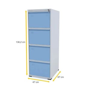 Características Técnicas: Porta-etiqueta e puxadores estampados na parte superior das gavetas Com acabamento em PVC Fechadura cilíndrica tipo yale com travamento simultâneo das gavetas Sistema de deslizamento das gavetas por patins nylon Confeccionado chapa aço n 16 (1,50mm) , n 20 (0,90mm) , n 24 (0,60mm) e n 26 (0,45mm) Tratado pelo processo anti-corrosivo à base de fosfato zinco Pintura eletrostática a pó com camada 30 a 40 mícrons secagem em estufa a 240 C Capacidade: 30 a 40 pastas ou 25 kg (por gaveta) Este produto será entregue desmontado **