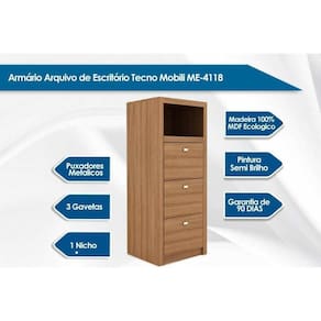 Arquivo de Escritório ME4118 c/ 3 Gavetas e 1 Nicho Rústico - Tecno Mobili