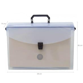 Garantia: 90 dias / Peso: 1,14Kg / Cores: Transparente e Kraft / Ref: 317H0005X Dimensão Da Maleta: 39cm (C) x 14cm (L) x 26cm (A) Dimensão Área Interna Da Maleta: 38cm (C) x 13cm (L) x 25cm (A) Dimensões Das Pastas: 36cm (C) x 1cm (L) x 24cm (A)
