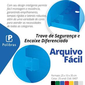 Toda a qualidade, durabilidade e praticidade dos Arquivos Fácil, agora venda em fardo plástico c/10 unidades. Formato: Medida Interna: 355x133x252mm consideradas de Vinco a Vinco. Medida Externa: 360x135x252mm. Marca: Não Informado Ean: 17898504392215
