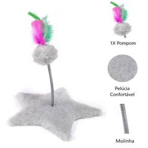 Arranhador De Gato Estrela Cinza Mola Bolinha Pelucia