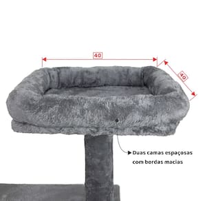 O arranhador é revestido em pelúcia para dar mais conforto aos pets e algumas colunas são revestidas em fibra natural de sisal.