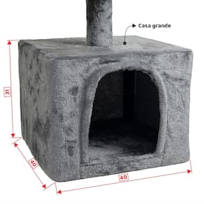 Desenhado por pessoas apaixonadas por gatos, esse luxuoso arranhador é composto por: Casa grande, três camas espaçosas, três poleiros, base, escada, brinquedo giratório, brinquedo em balanço e corda de sisal.