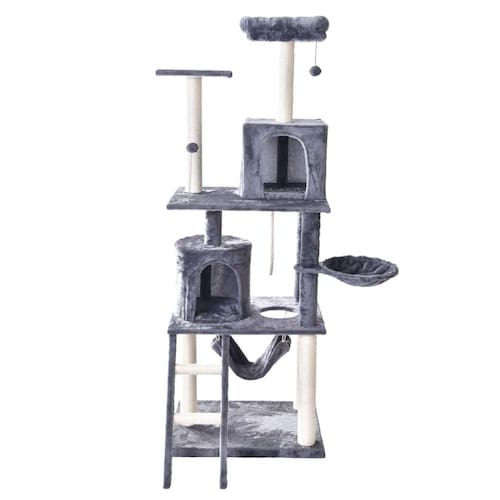 Descrição do produto: Desenhado por pessoas que conhecem de gatos, esse luxuoso arranhador oferece vários cômodos super confortáveis para os seus gatinhos repousarem, entre eles: Casas, cama, rede, cesto e poleiros.
